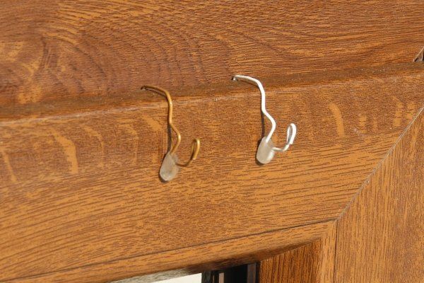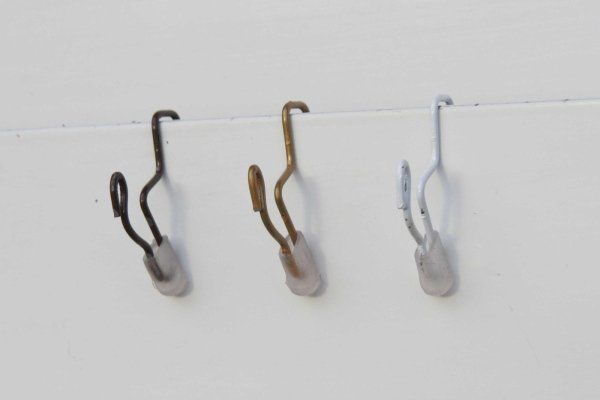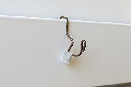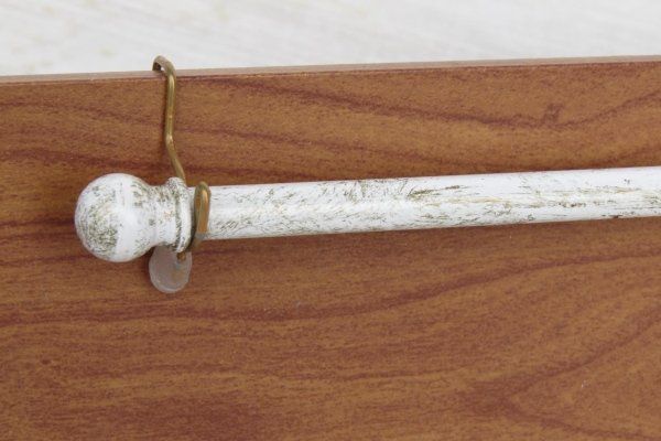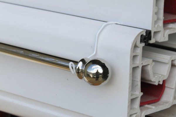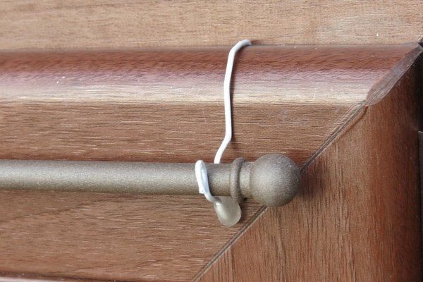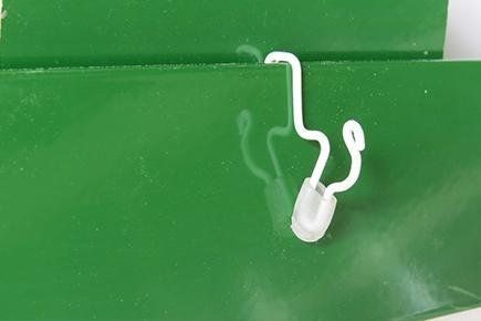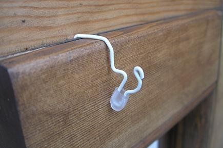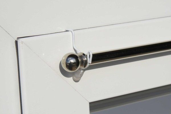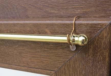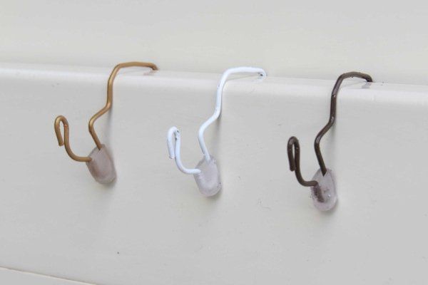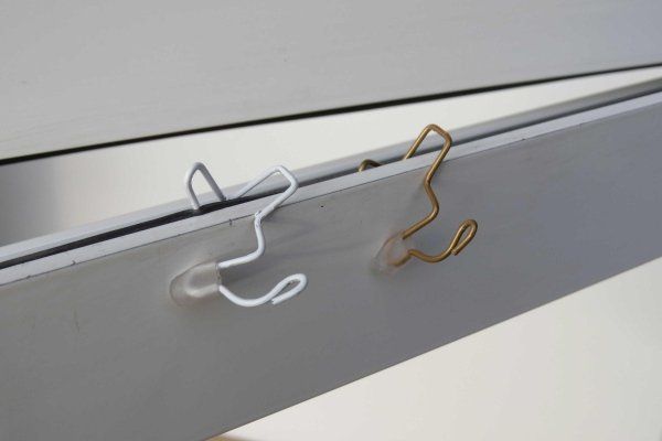 Gancio in filo di acciaio plastificato, con piedino d'appoggio nelle finiture bianco, oro e marrone per bastoncini e astine di 7 oppure 10 mm. Il gancio si applica direttamente sopra all'anta dell'infisso senza forare e danneggiare, si innesta il tubetto fissandolo all'interno del gancio lasciando a vista il pomolino terminale. Il bastoncino rimane fermo anche in caso di apertura a vasistas, lucernai e pendenze varie.