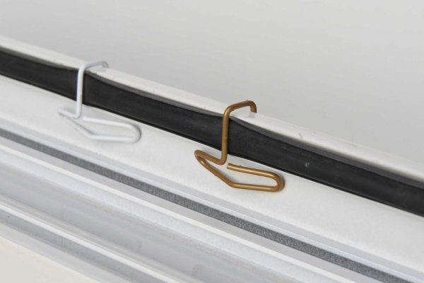La giusta misura del gancio si ottiene aprendo l'anta dell'infisso, e verificare in alto lo spessore della battuta e della guarnizione. Le misure disponibili per alluminio sono 6 e 10 mm mentre per legno e PVC sono da 16 a 26 mm.
